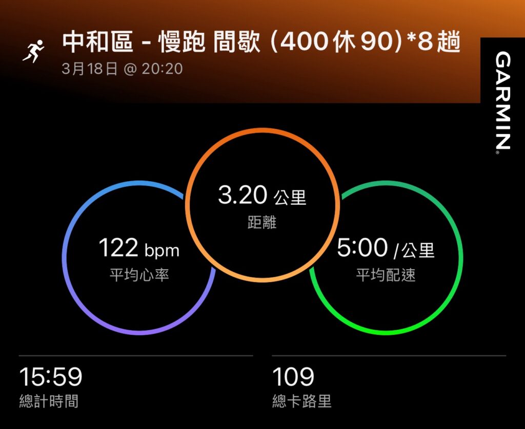 晚上練400間歇